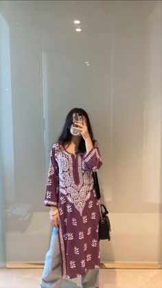 After 20 minutes A girl came out of the bathroom with a towel wrapped around her body, went into the closet and wore a mulberry pink color chicken kurti with wide jeans, kept her hair open and put silver earrings in her ears, she quickly got ready and went downstairs where everyone was sitting on the dining table and having breakfast.